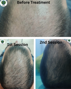 After proper scalp examination and diagnosis, a personalized treatment plan was started. Within two sessions, early improvement in hair density and new hair growth can be observed. Modern dermatological treatments such as PRP therapy, scalp treatments, and medical hair restoration therapies help stimulate hair follicles and support healthy hair regrowth.